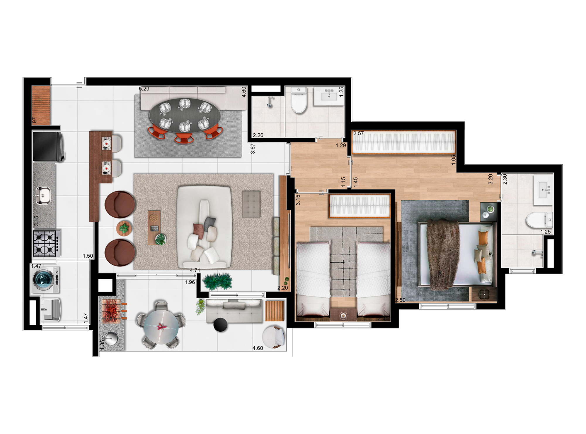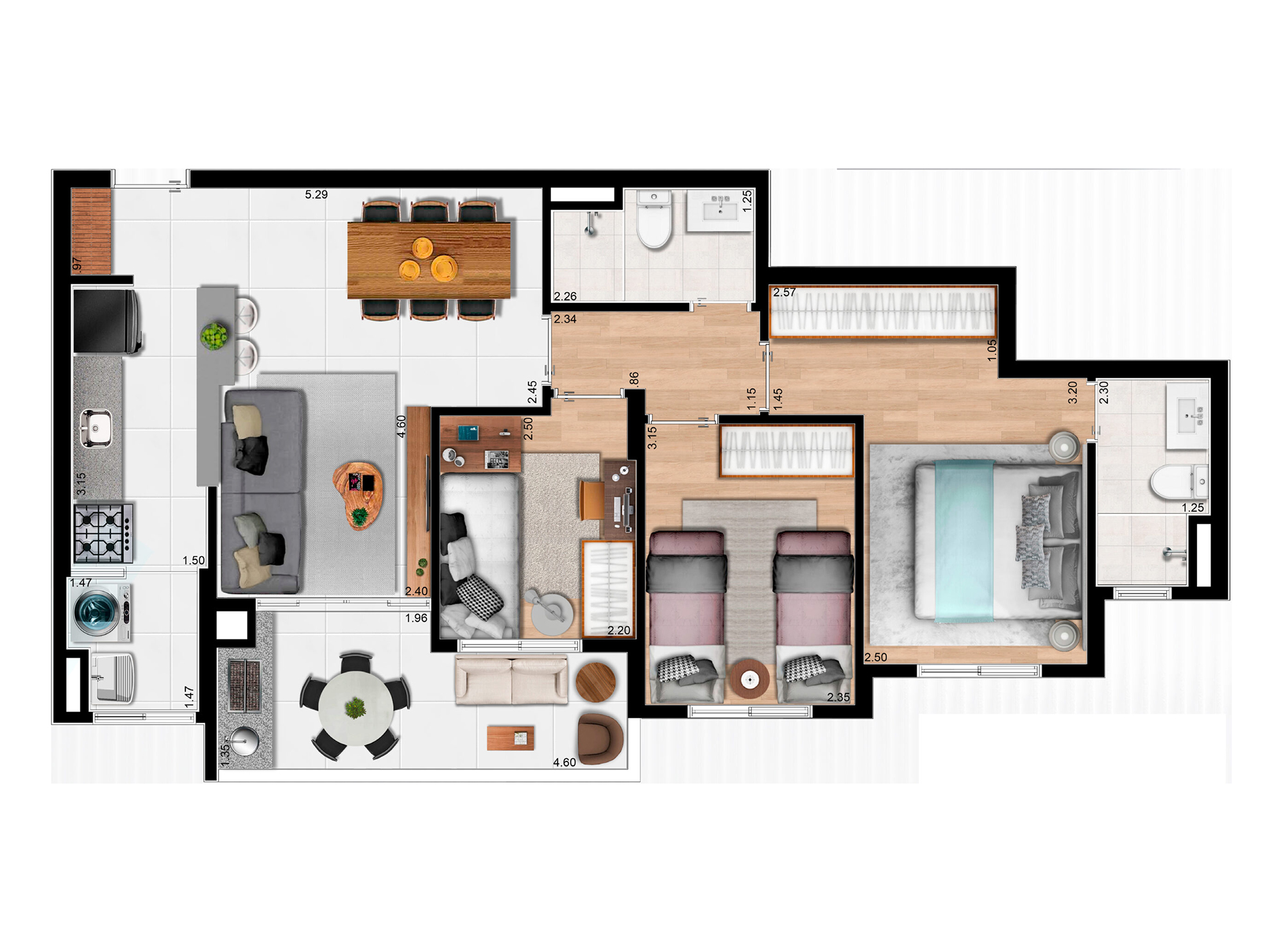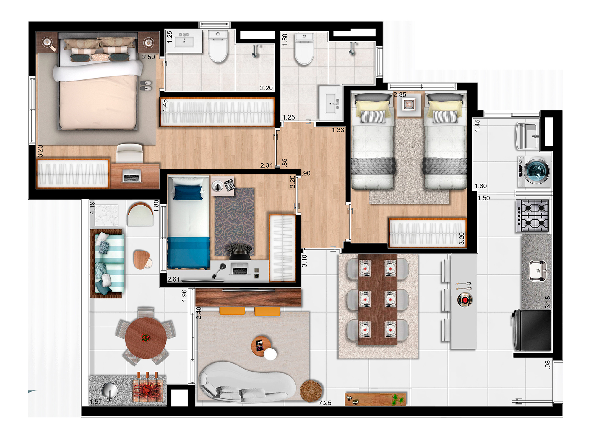 2 e 3 dormitórios